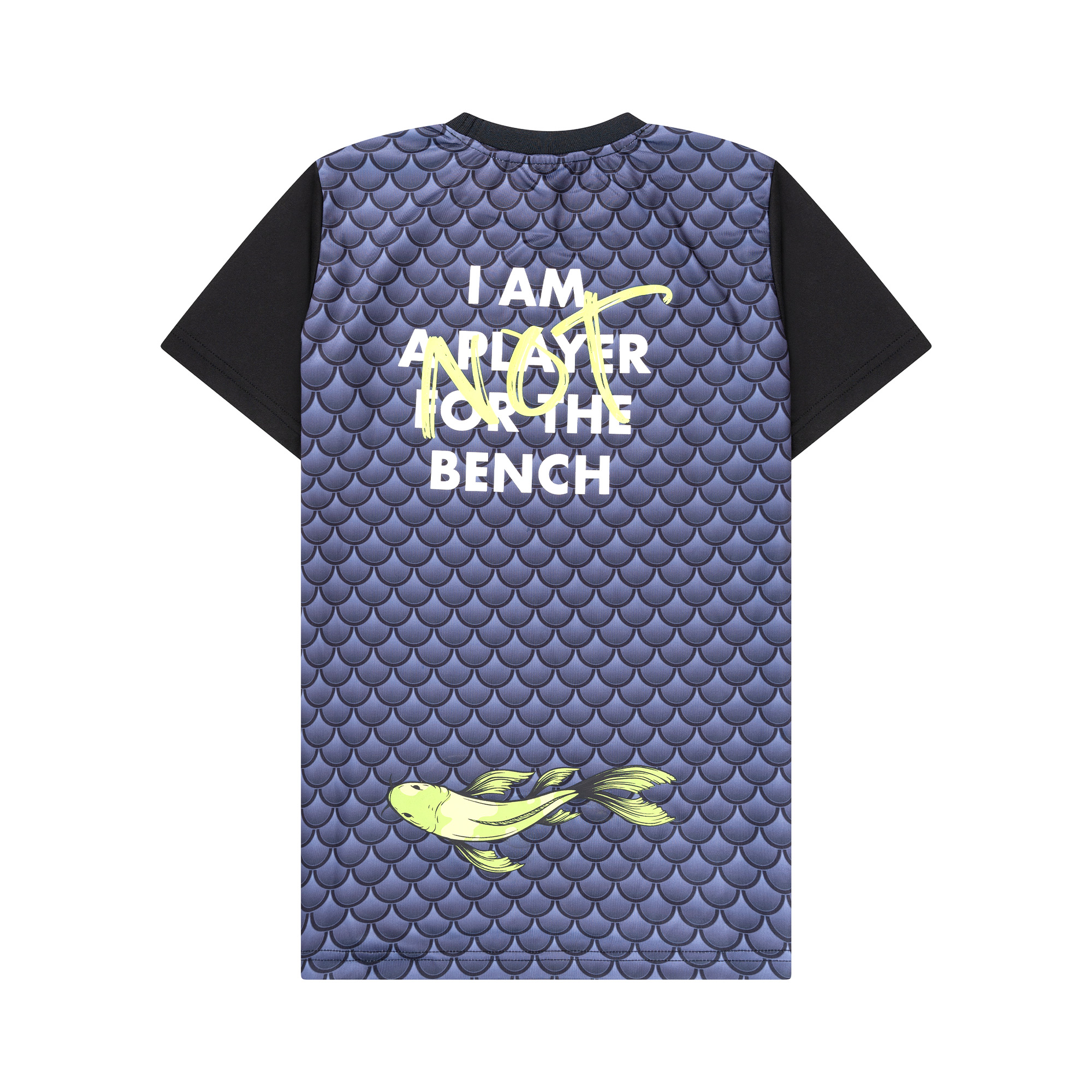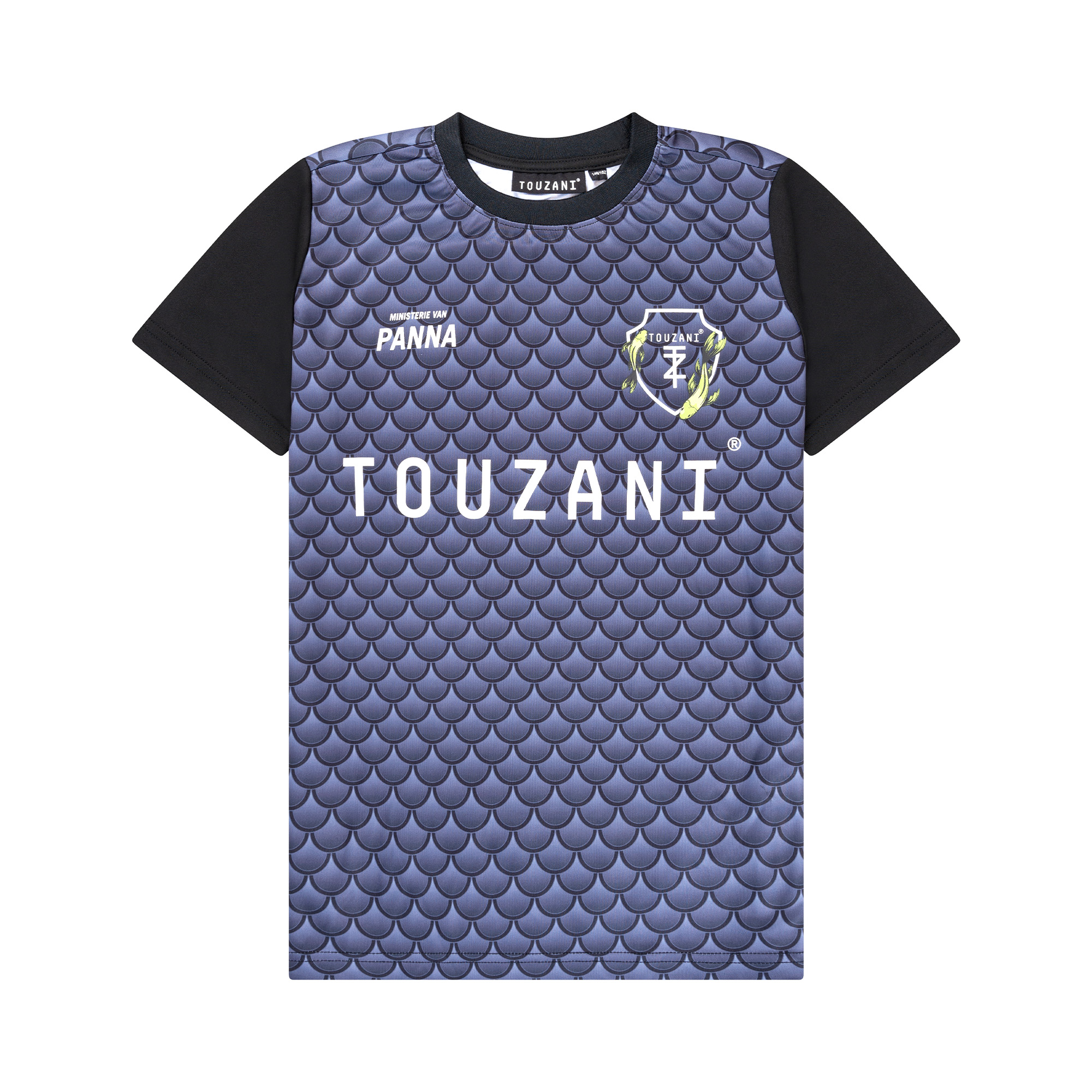 De Hikarimono Football T-shirt, vernoemd naar de Hikarimono Koi Karper en heeft een ronde zwarte kraag.